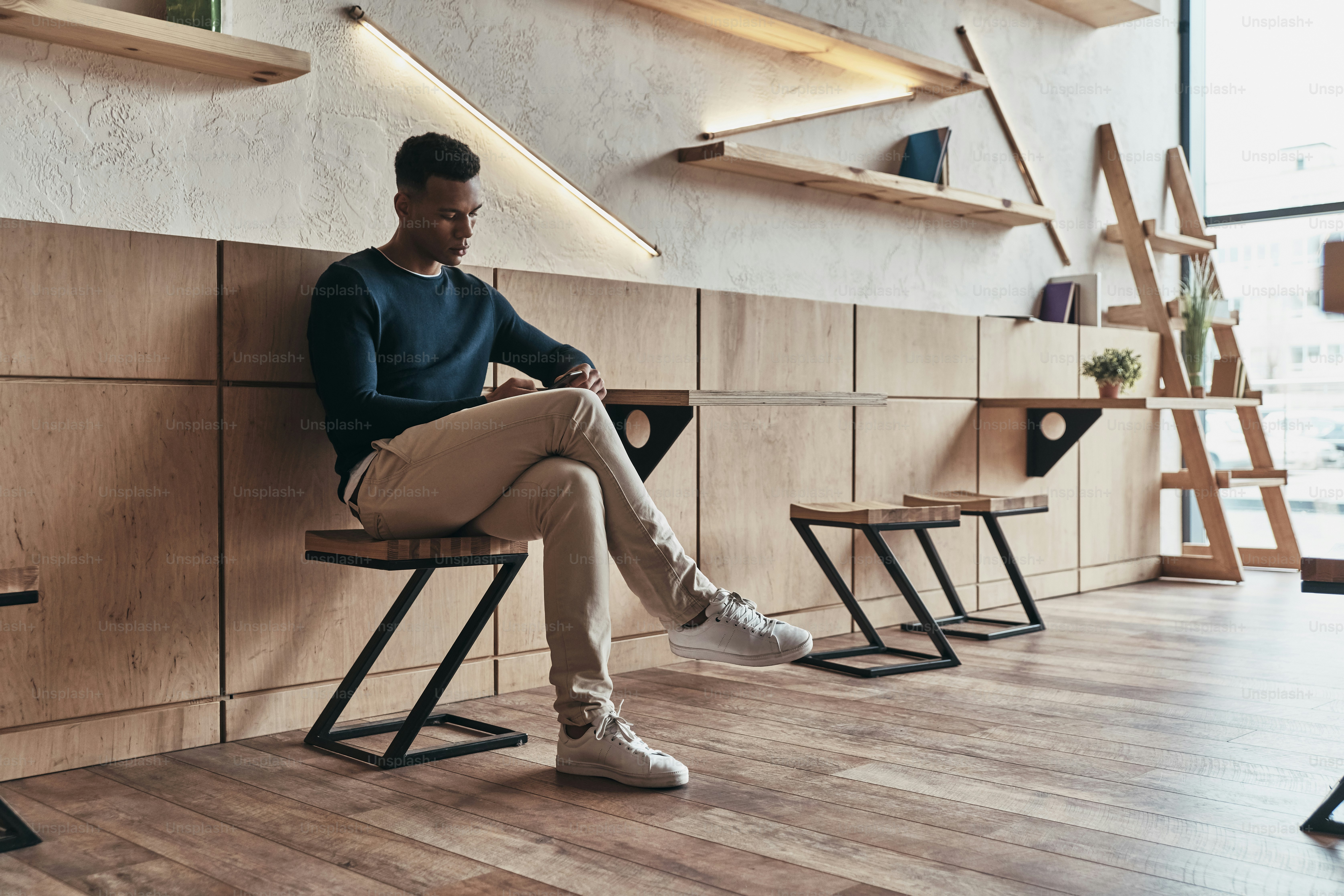 Man Leaning On Door While Holding On Smartphone Free Stock Photo